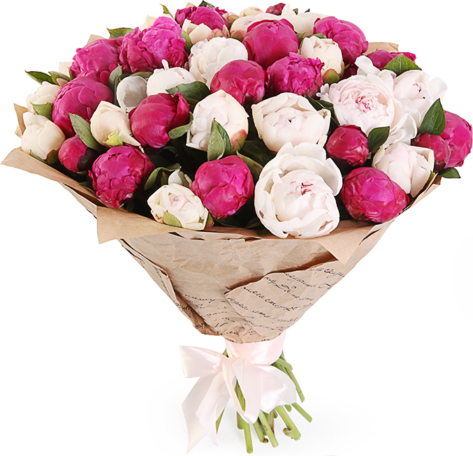 Шикарный букет из божественно прекрасных красных и белых пионов - это букет с особым значением и особым свойством, так как, согласно поверью, пионы обладают свойством влиять на наши чувства и эмоции. Так красным пионам приписывают свойство пробуждать любовь и страсть, а белые пионы гармонизируют, располагают к доверию и доброте. Великолепное сочетание красных и белых пионов в букете - это символ настоящей искренней и преданной любви.